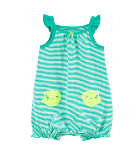 Romper Carter's Malha Verde Listrado Limãozinho